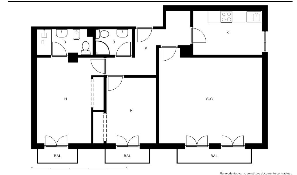 Construido en 2008, este piso tiene una superficie de 87 m² y se distribuye en salón-comedor, 2 dormitorios, cocina amueblada y equipada con horno, vitrocerámica y campana extractora y 2 baños, listo para convertirse en su próxima vivienda en alquiler.